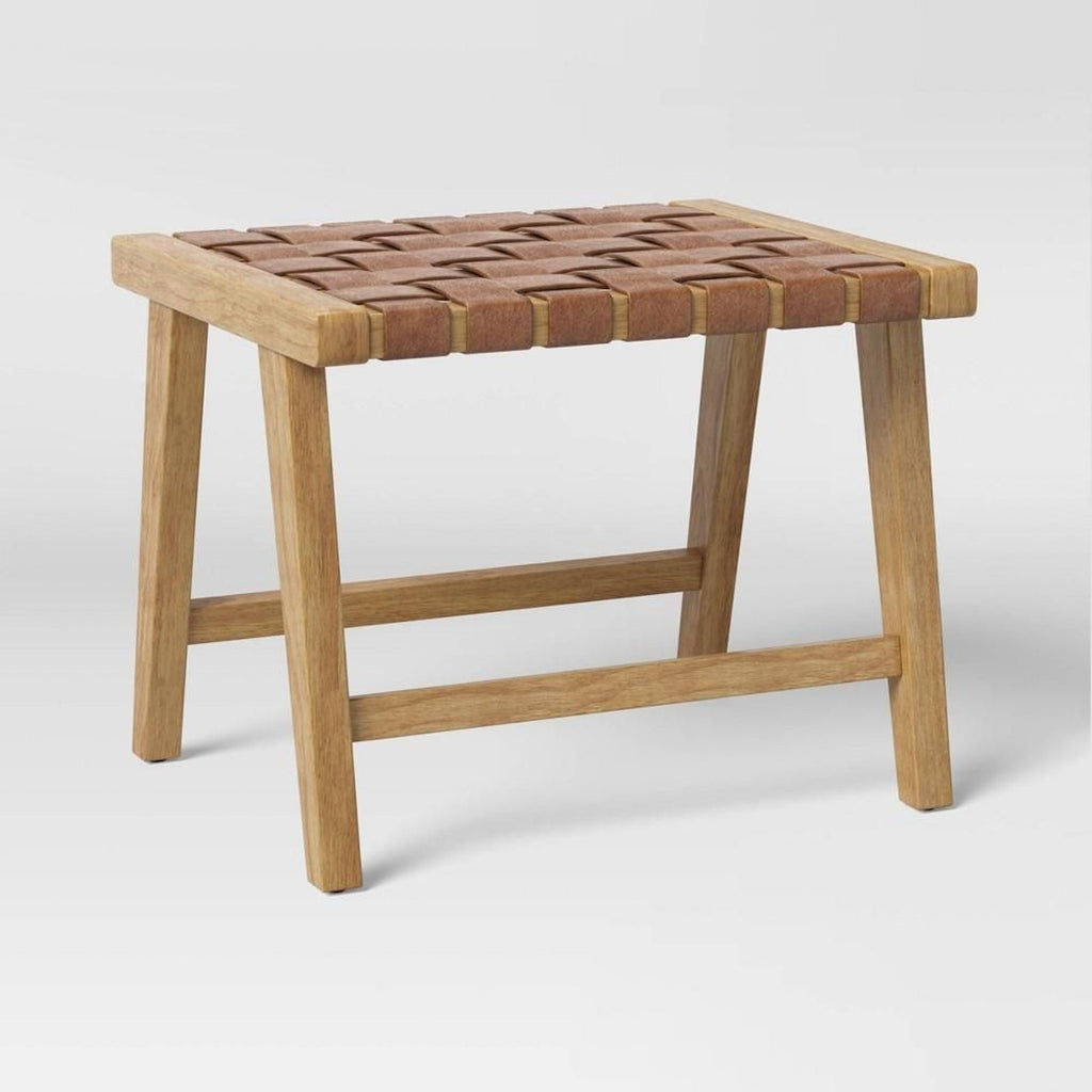 Flaunt your artful style of interior decor by updating your home with this Ceylon Woven and Wood Ottoman from Opalhouse™. Made with a natural wood frame with clean lines, this ottoman stands on four slanted legs, and comes with a woven top for a textured and beautiful look. This wood-frame ottoman makes the perfect base for sitting, resting your feet or serving, adding versatile usage options to your home.